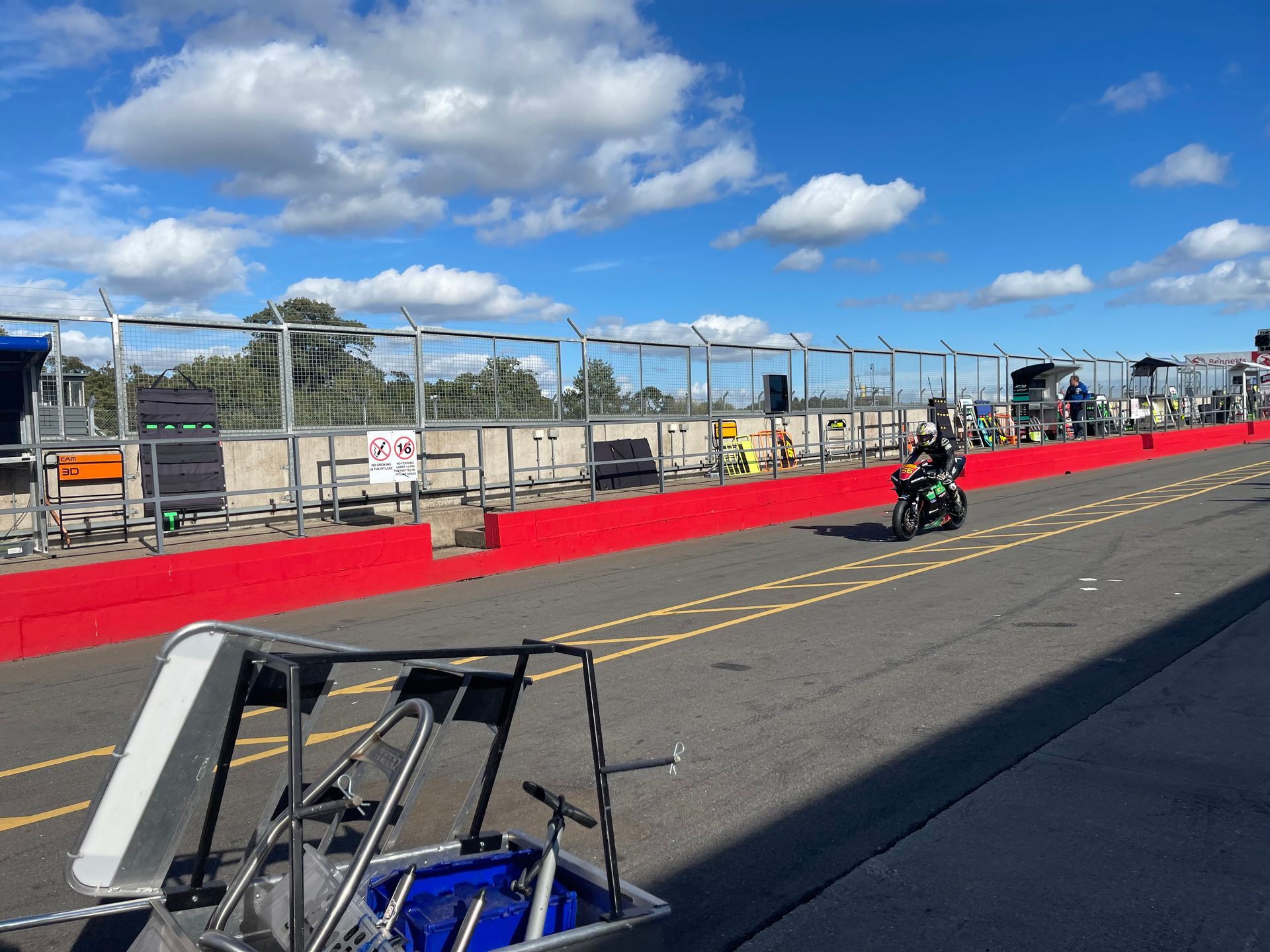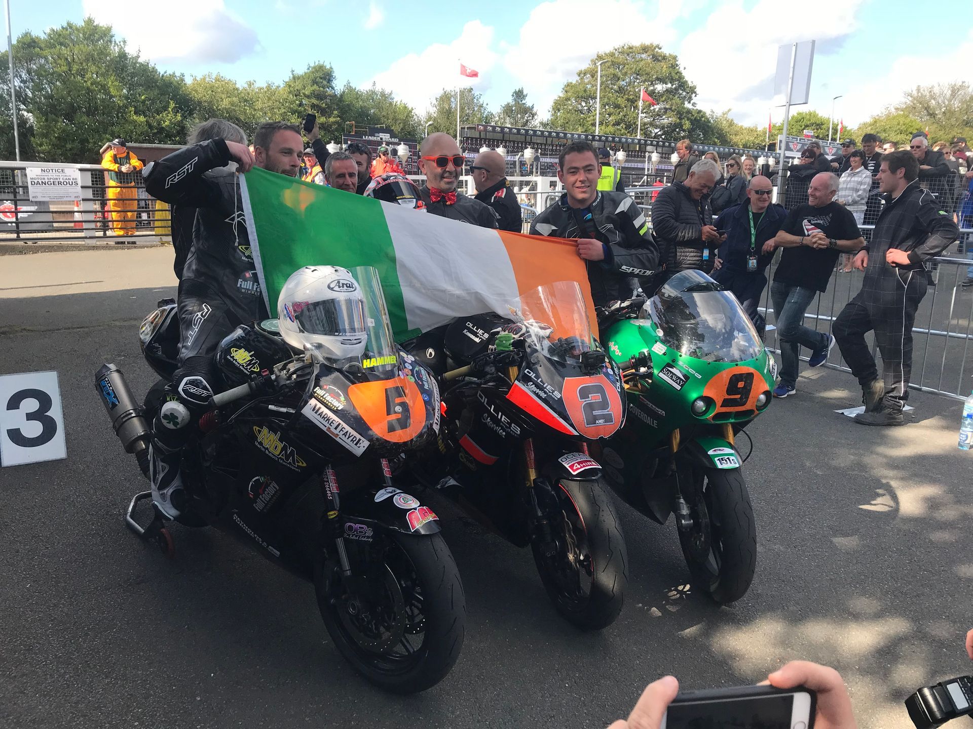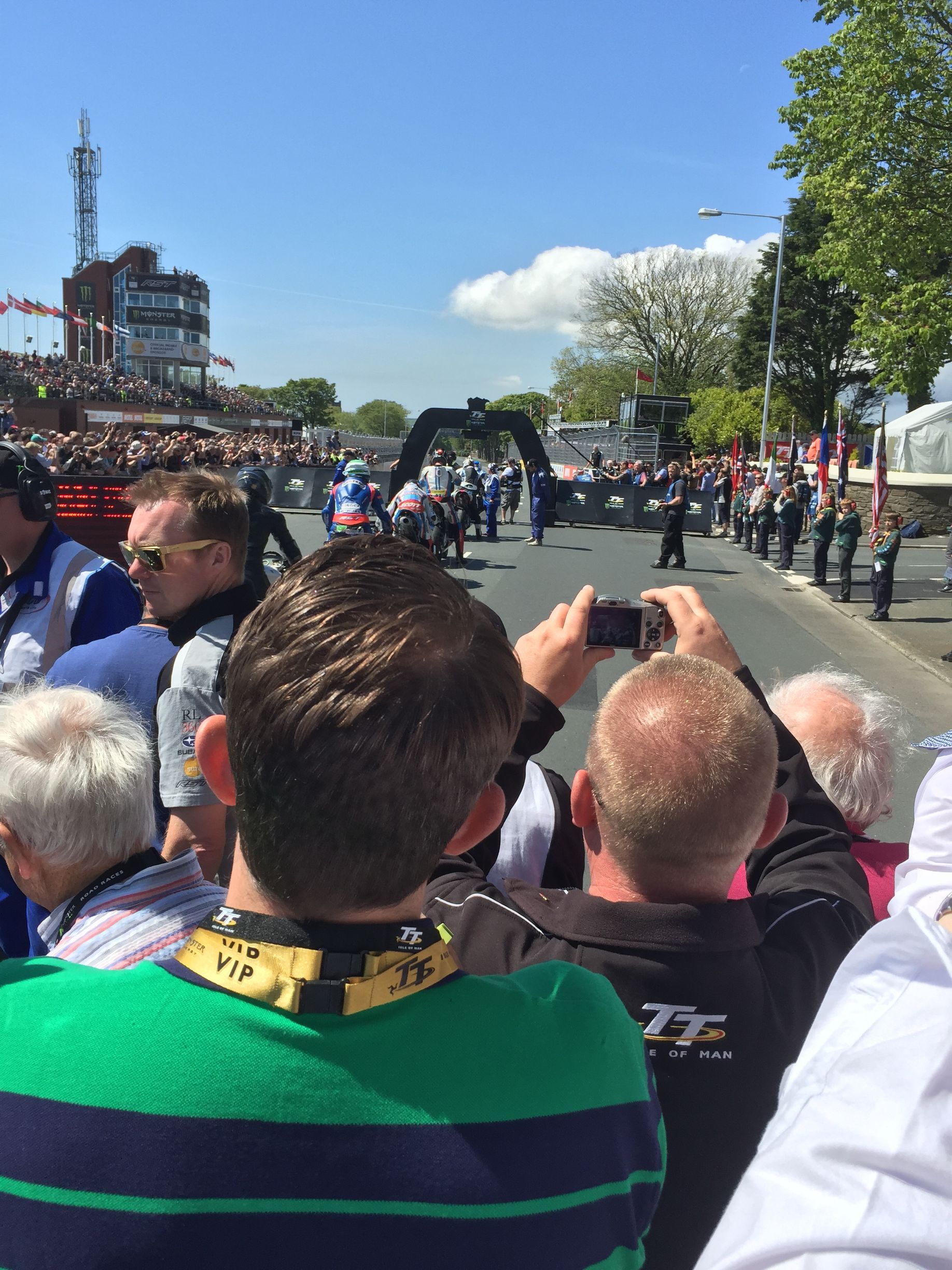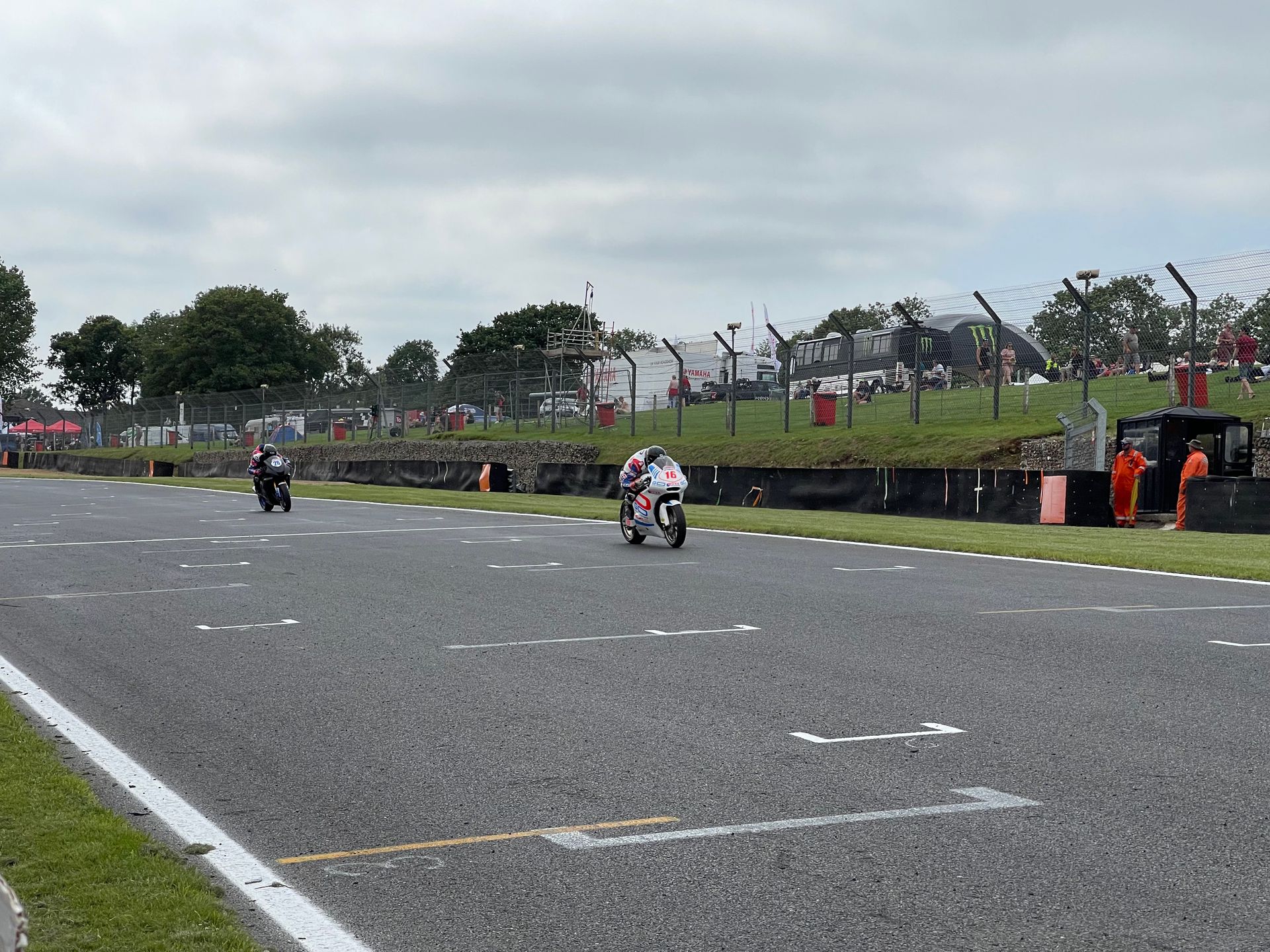 Mick was brilliant, most of the buyers of the platinum tickets were corporate, so not really there for the bikes, and had soon wandered off, leaving just a handful of us with Mick and he looked after us so well. Just before practice he bundled us into a borrowed course car and went off to visit an old lady Mick knew who had bungalow on Bray hill. We had tea and cake while bikes flew by at 180mph inches away from us as we sat on her garden wall. It was so raw and physical, the sound, the smell and the pulse of energy that surged through your body is indescribable. If you’ve never done it, get in a hedge on the circuit for an experience of your life. Intoxicating and addictive. He also introduced us to Davison’s Ice cream, possibly the best in the world. Walking round the paddock and on the grid we met everyone and really felt part of the excitement.