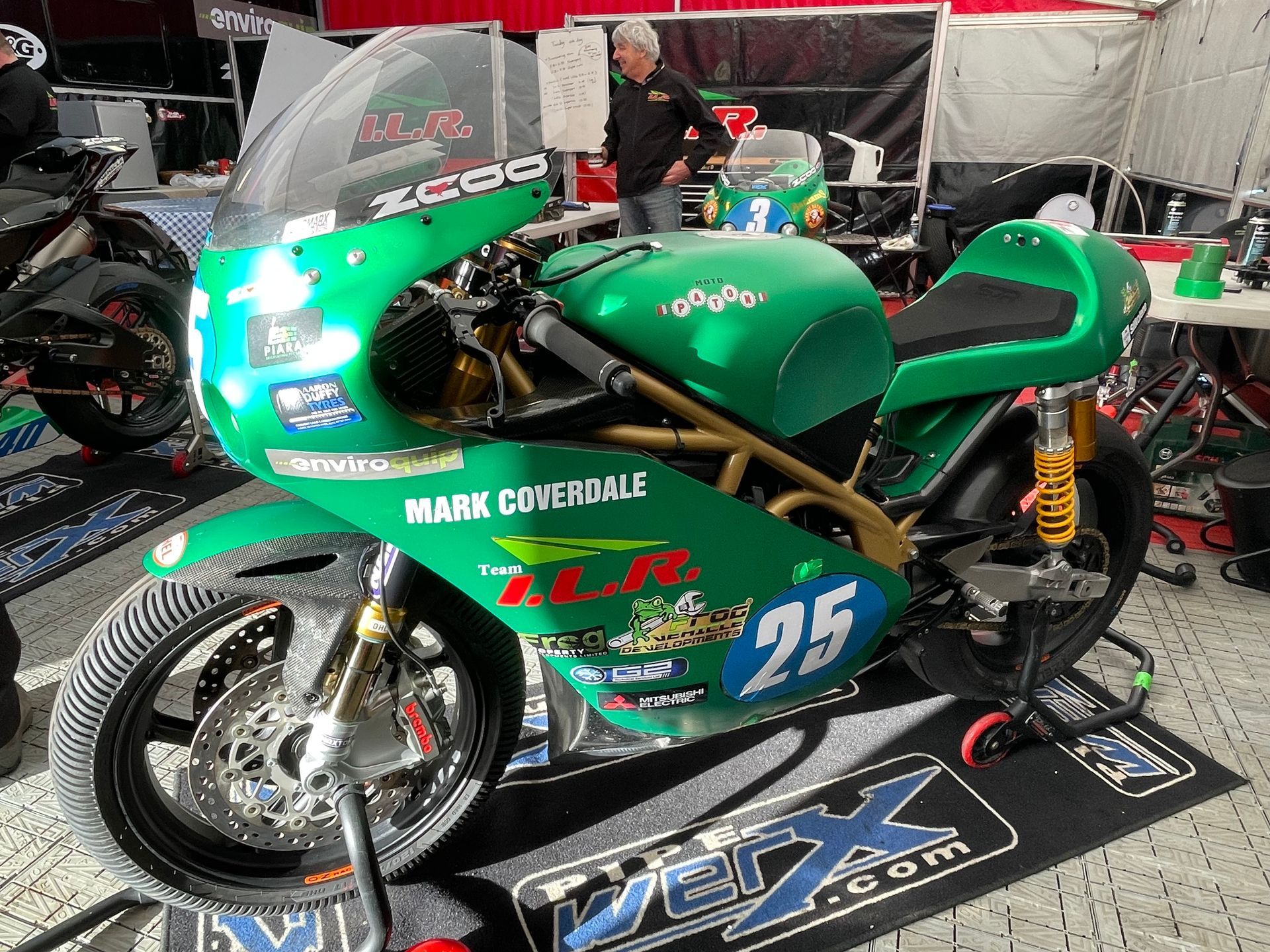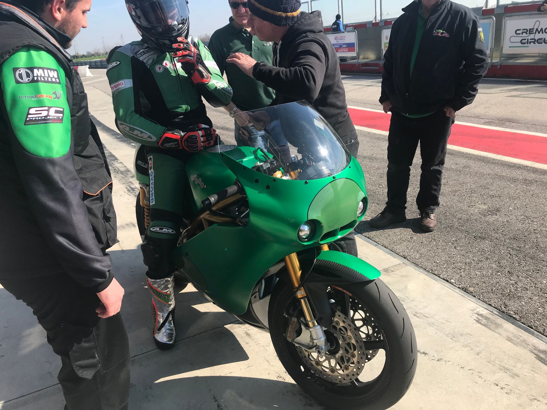 For the 2017 TT Ian was to be again riding the Suter. He had kept himself in race fitness and done all the necessary qualifying races to maintain his mountain licence to compete at the TT. Just a few weeks before the TT, Suter said they were sorry but were overstretched in other commitments and unfortunately couldn’t come. Ian was obviously very disappointed and on a rainy Wednesday of race week, we found ourselves in the hospitality marquee again, racing cancelled, and wrapping ourselves around quite a few drinks. Consoling him I said “If you want to race at the TT next year I will buy our own Suter". Next day, now sober, Ian called me and asked if I was serious about buying a bike and I said yes, my word is my bond. He said instead of the Suter which was probably far too complicated for us, for the same money we could buy a couple of Patons. The Patons had done really well at the TT that year and Ian had run one before. I said why not and Ian contacted Paolo at Paton and in March next year we went to Cremona Circuit in Italy to test and bring them back.