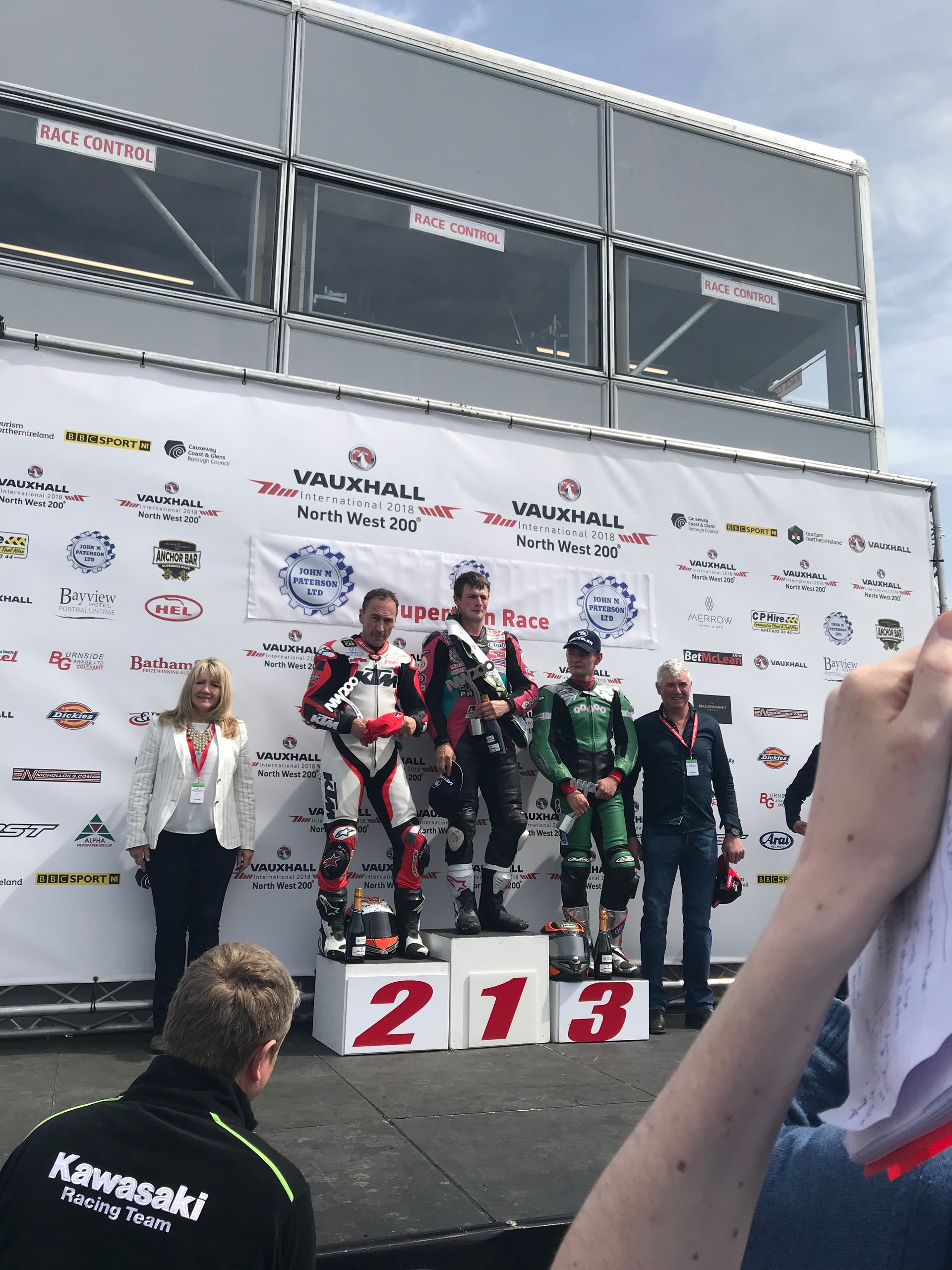 James Chawke was running his own supersport for a win and my Paton for a podium at 2018 Manx Grand Prix. It was the 30th anniversary of the wonderful RC30 and it was being celebrated by the classic TT. A party had come across from Japan, including members of the RC30 Owners club and the special guest of honour, Honda-san (no relation) who was the designer of the RC30. Ian and I were asked to look after the party. They were a great bunch of guys and we first went to Hillberry then onto the Creg-ny-baa. My highlight was at the Creg where every time James went past us in his victorious race we all stood as one, with hands in the air cheering him on.