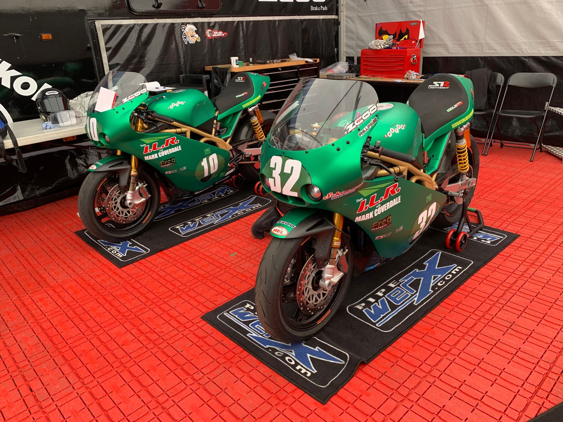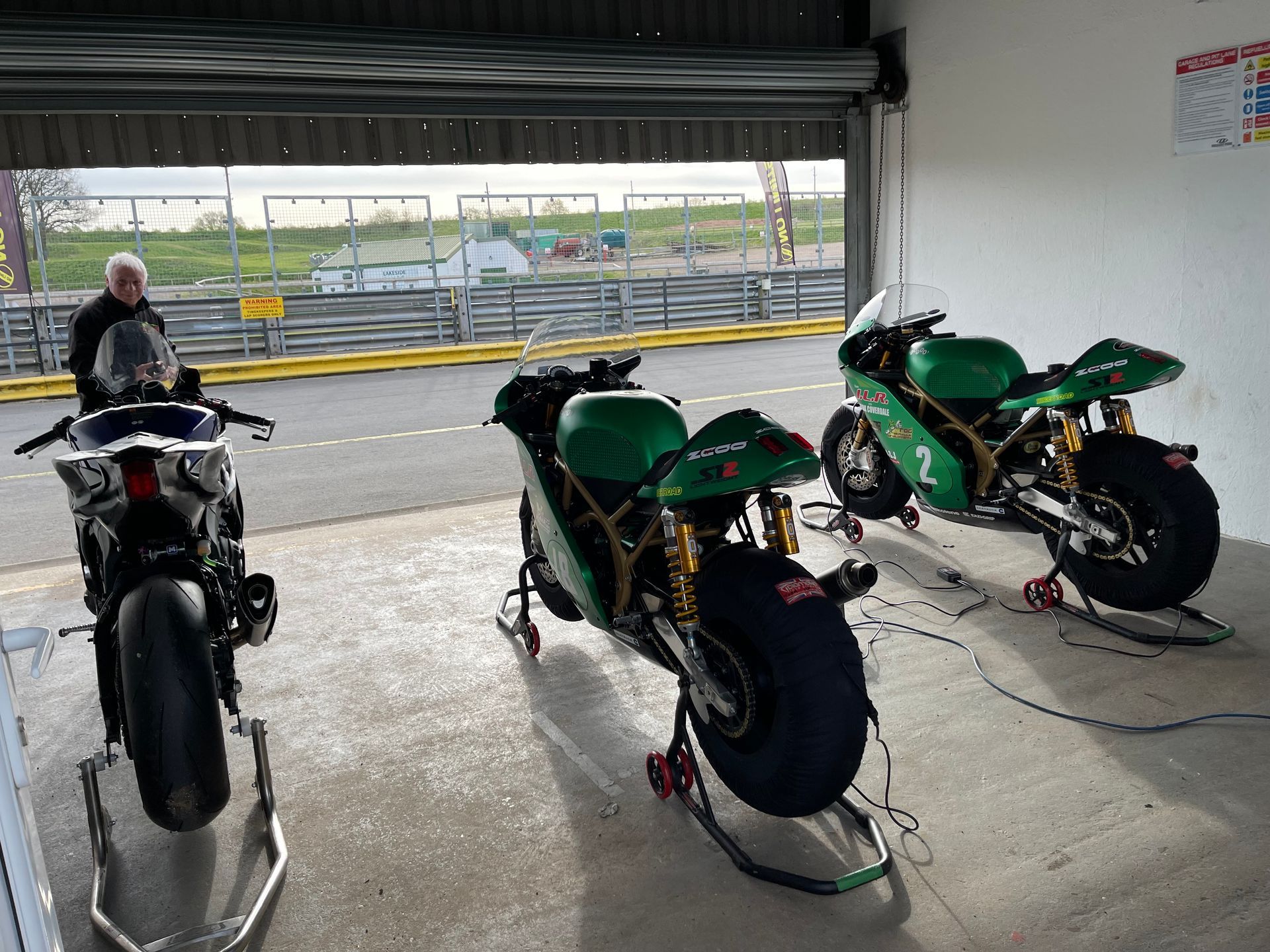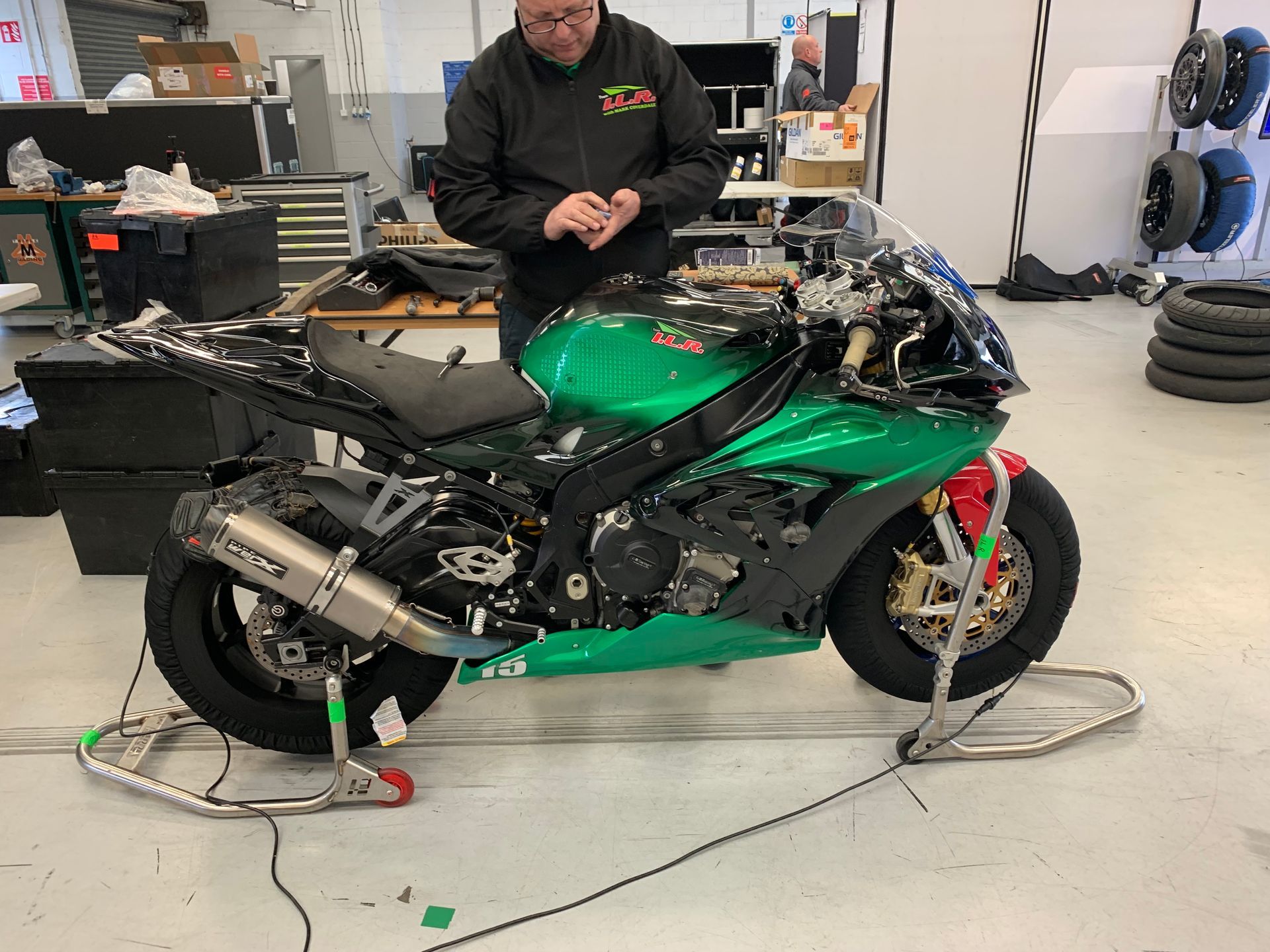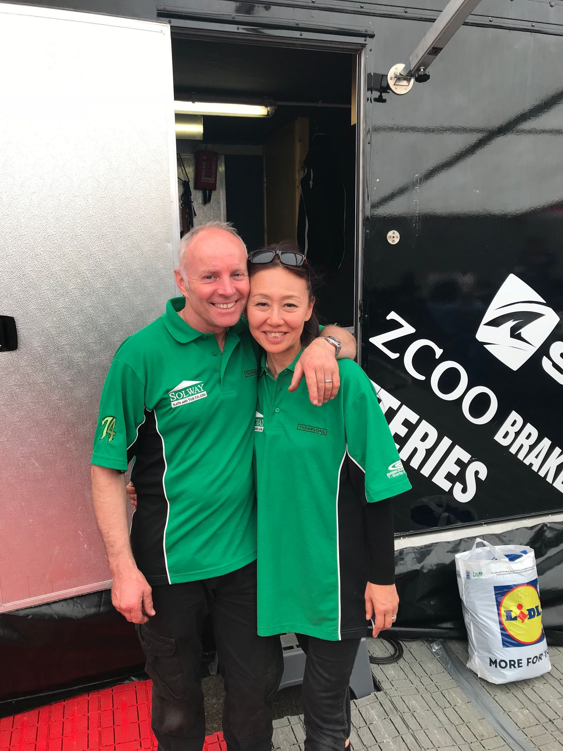 I had been sponsoring Team ILR for a couple of years and had been the ideal sponsor, I sent them money, made no demands at all and very rarely showed my face. When I did I helped as much as I could and got on like a house on fire with the team. We worked hard and partied hard. The team members were also brilliant. Ian Lougher is a ten times TT winner, has corners named after him at the Ulster Grand Prix circuit and Olivers mount where he has ludicrous number of wins, over 140 I think. He is however one of the nicest most humble people you are ever likely to meet. Apart from what he has achieved on the track he can really set up a bike. To this day we do not use dataloging but rely on the sensitivity of a Welshman bouncing the suspension up and down combined with rider feedback to assess our settings. When we relax at the end of the day Ian tells the funniest stories of his times racing. Asa, Ian’s wife, looks after us, so while helping in the pits, working trackboards, doing translations, still manages to somehow produce three really delicious meals a day for the team from inside a truck. Our chief mechanic is Michael “Jacko” Jackson and he is a brilliant mechanic, so hardworking and very happy. Always humming and whistling we can always find him. Everyone loves Jacko. He too is great rider and had many British and Irish titles and is a demon off road as