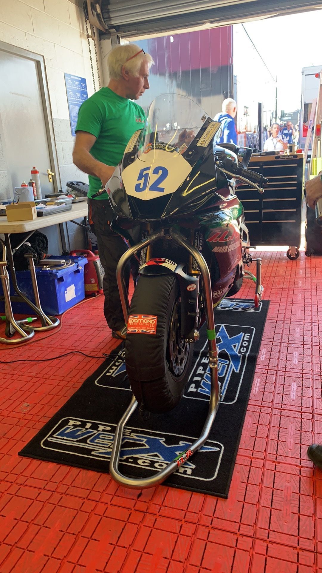 It’s certainly not me, I try and help out as much as I can but in the main just try to take as much pressure off the team and talk to anyone that comes up to the awning asking questions. If there is a special ingredient it is to make the rider as happy and relaxed as possible. We prepare thoroughly and try and get the bikes in the right condition, fast and rideable and fit to last the distance. If you want to finish first, first you have to finish! Ian is our set up guru and we have usually got the bike in a pretty good starting point before practice starts and he has the experience to work with our riders to get the settings about right. Ian also can help and guide the rider to make the best of the bike at the circuit. Jacko and his mechanics, work cheerfully and tirelessly ensuring the bikes are ready, fettled and scrutineered. We try to avoid any sense of panic or tension at all. Efficient but relaxed and good humoured is the order of the day. Every rider has to prepare in his own way and can do without any hint of additional stress, we believe a happy rider is a fast rider. We want success but we do not put any pressure on riders for it. Races are not won in practice but they can be lost. We would rather see easy progression and development rather than over extension early on especially at difficult circuits like the TT.
