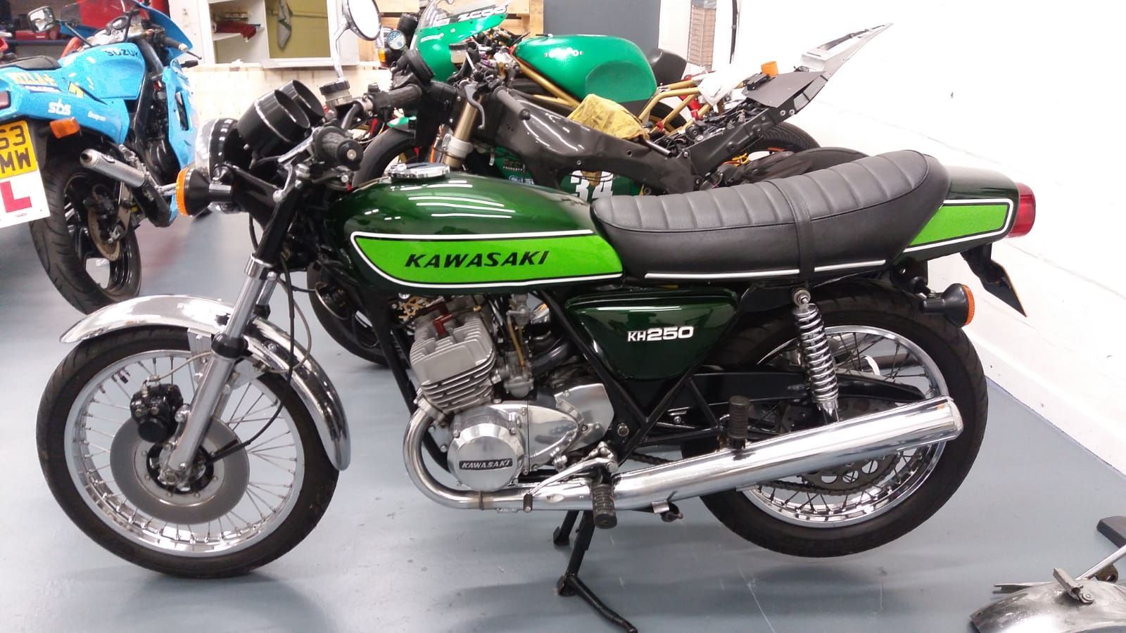 Yes in 2019, I asked Jacko if he would like to work for me full-time as I wanted to get a lot more preparation done on the race bikes before the season. When he wasn’t working on race bikes he would do up modern classics. Anything two stroke, some race bikes, and the road and trail bikes of the 70s and 80s. We were drawn to the bikes we always wanted and we have now got about fifty of them. Amongst them there’s a Moto Morini 250c identical to the one I rode on the circuits. Looking at it now its amazing what tiny tyres it has, there are bicycles nowadays with bigger tyres. It still handled brilliantly. As I said we have a collection of Batavus mopeds, every type of Honda CB from the 70s, Suzuki GTs including a 750 Kettle, Kawasakis including a lovely little KH250 and a Z900. Lots of Yamaha two strokes. We have got quite a few fully restored to an inch of their life just waiting for new owners. We are really good at the restoring but rubbish at the selling. I say to Jacko we really must sell some of these and he asks which one of my babies do I want to let go.