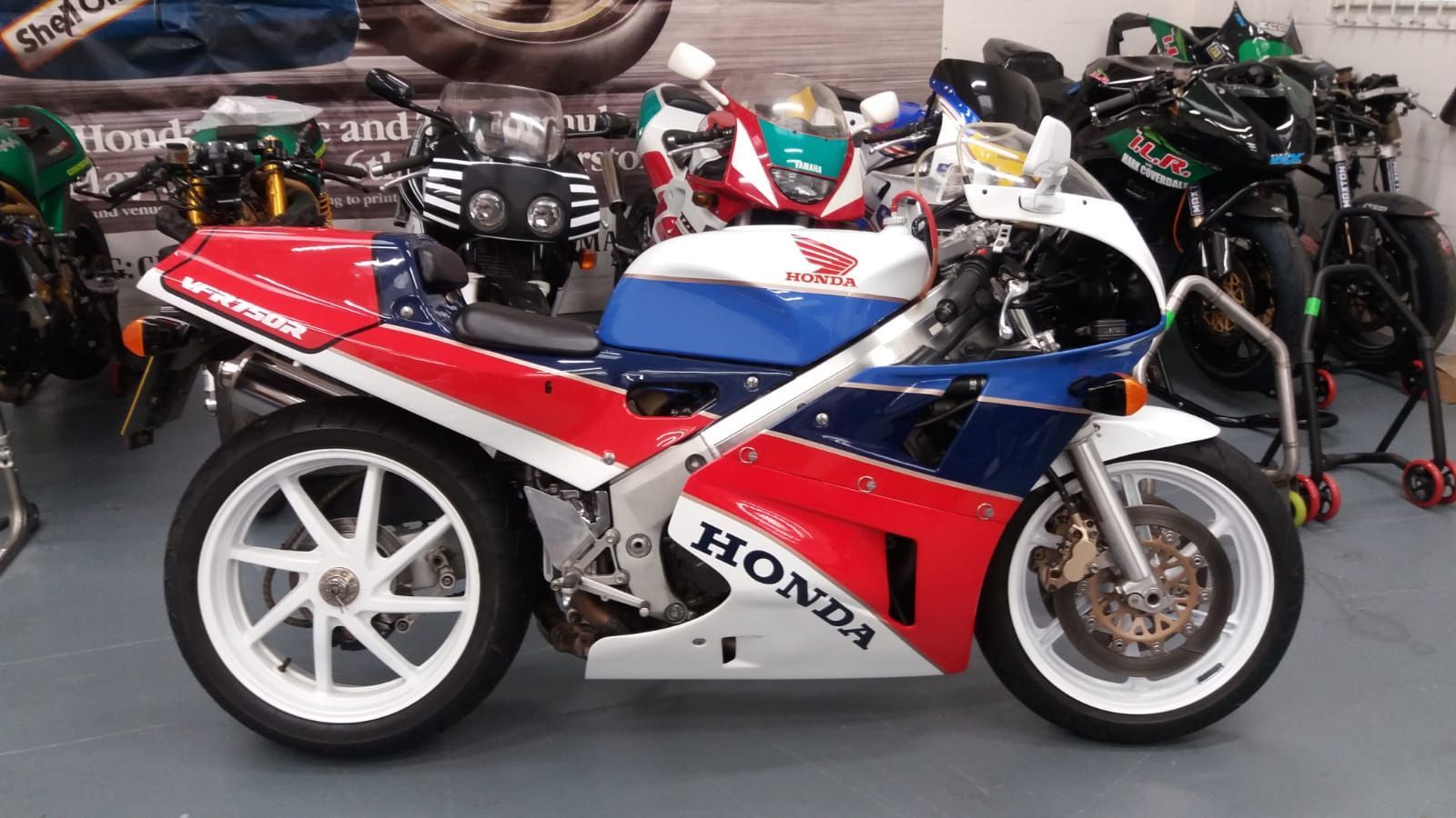 I still have my 99 Busa which like some of my other bikes, has an adapted gear shift for my duff ankle, an old blue RD400 and my faithful Suzuki Burgman. Its a giant 650 scooter which is such a surprisingly good bike, so comfortable, but handles astonishingly well. We recently got a FSIE in as a restoration project and when we got it back to the workshops Jacko and me were like dogs with two tails, initially forgetting the four in line gear sequence, but were soon bombing round the trading estate on it. In the house I have an Honda RC30, Norton Commando 750, Suzuki XR69 and a Ducati Hailwood Replica.