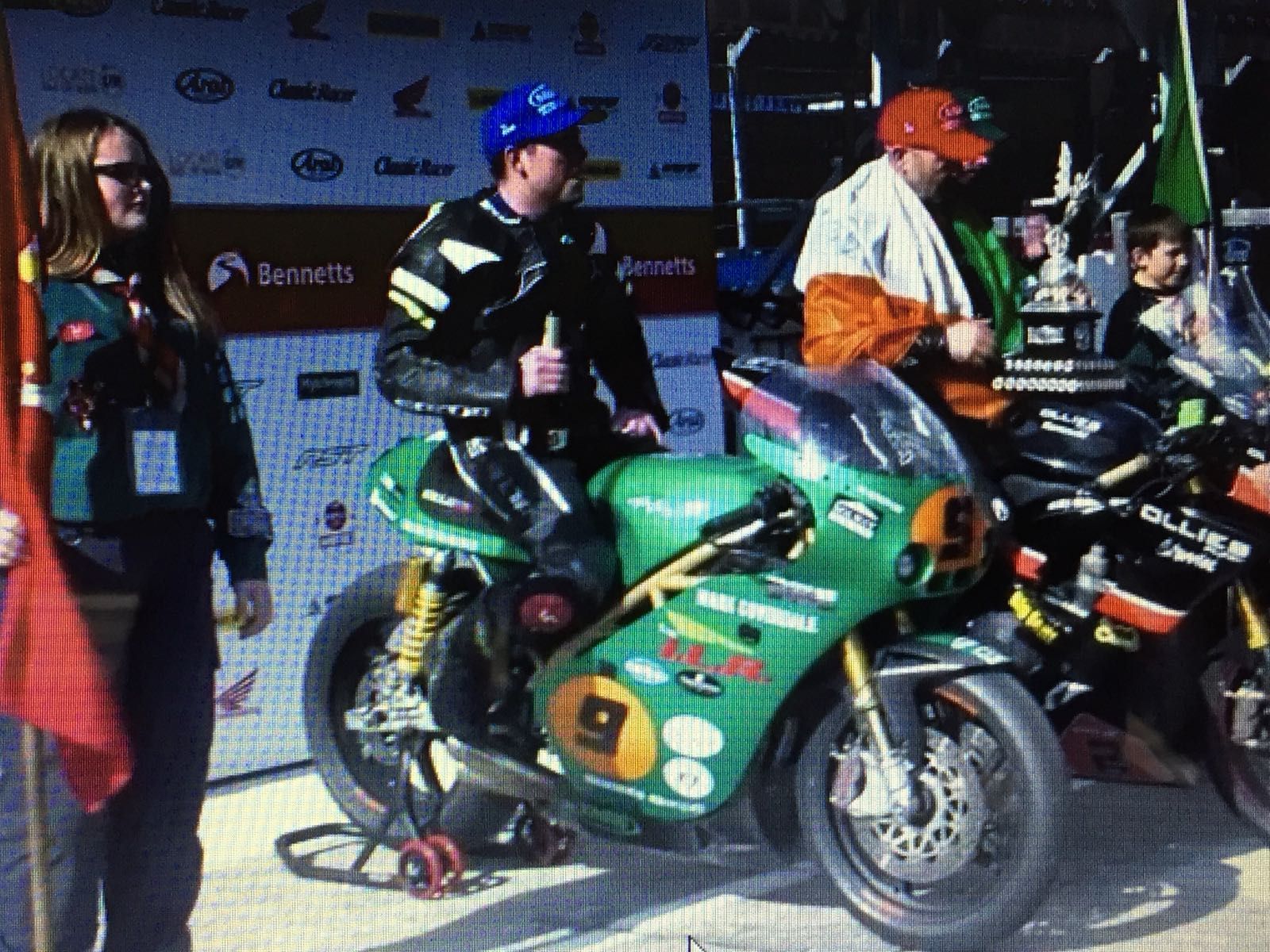 Mick was brilliant, most of the buyers of the platinum tickets were corporate, so not really there for the bikes, and had soon wandered off, leaving just a handful of us with Mick and he looked after us so well. Just before practice he bundled us into a borrowed course car and went off to visit an old lady Mick knew who had bungalow on Bray hill. We had tea and cake while bikes flew by at 180mph inches away from us as we sat on her garden wall. It was so raw and physical, the sound, the smell and the pulse of energy that surged through your body is indescribable. If you’ve never done it, get in a hedge on the circuit for an experience of your life. Intoxicating and addictive. He also introduced us to Davison’s Ice cream, possibly the best in the world. Walking round the paddock and on the grid we met everyone and really felt part of the excitement.